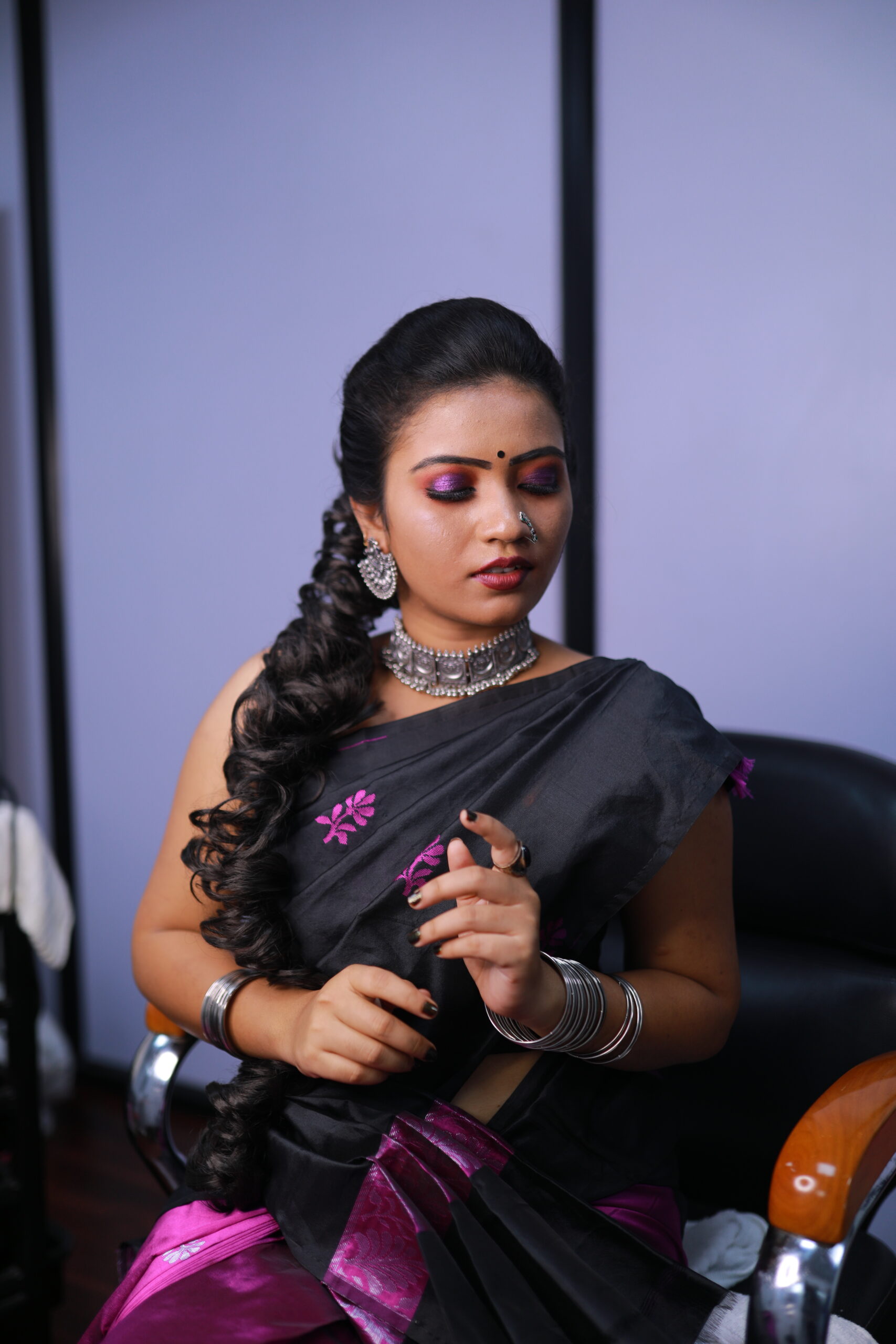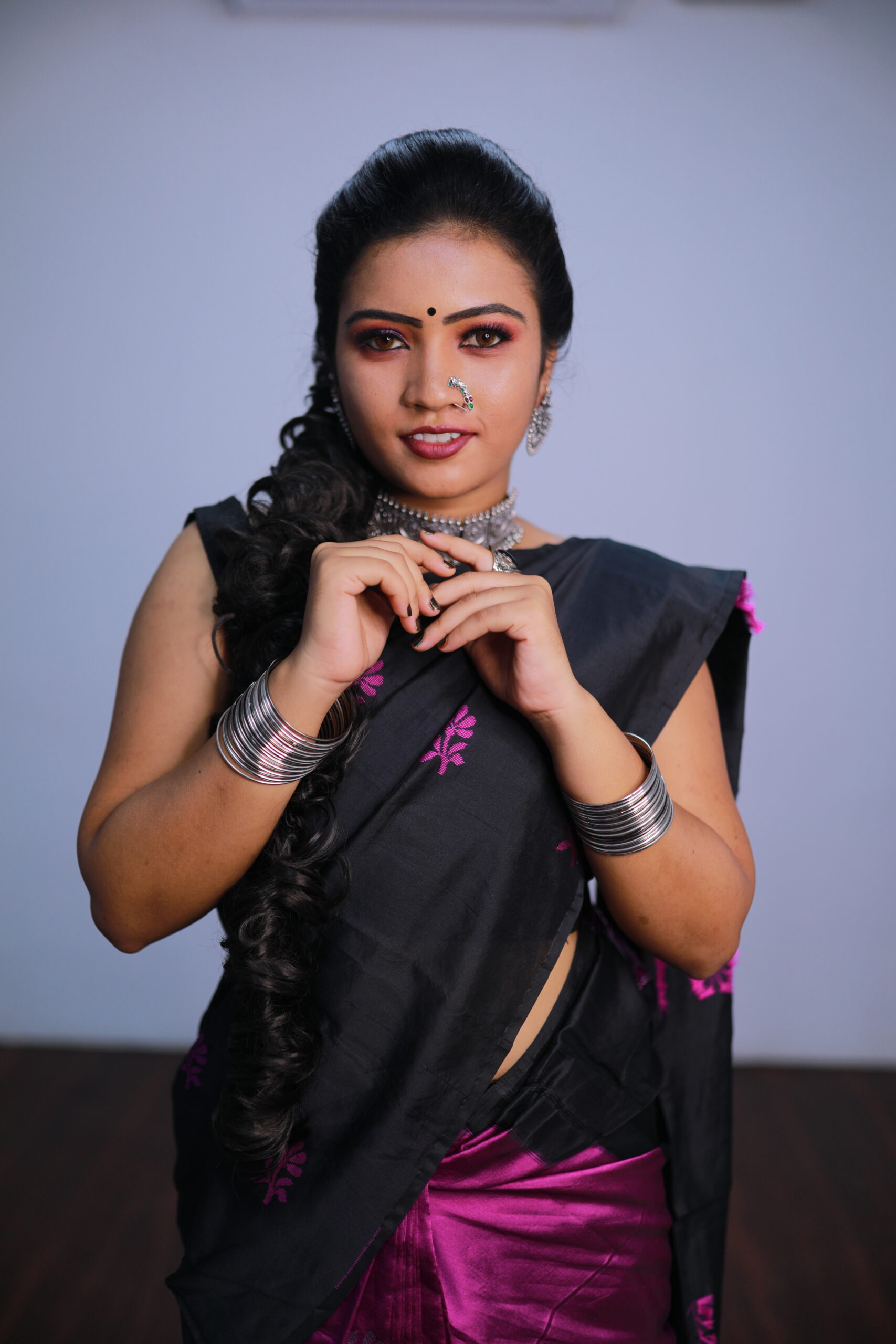 Exquisite traditional makeup paired with a stunning red and gold saree and intricate gold jewelry, capturing the essence of elegance. No Images Found! Graceful beauty in a light silver blue saree adorned with intricate earrings. No Images Found! Vibrant orange saree with black musical motifs and a chic white ruffled blouse, exuding modern elegance. No Images Found! Adorned in vibrant sarees and intricate jewelry, epitomizing traditional and modern elegance. IMGL4890IMGL5112IMGL5129Load MoreEnd of Content.